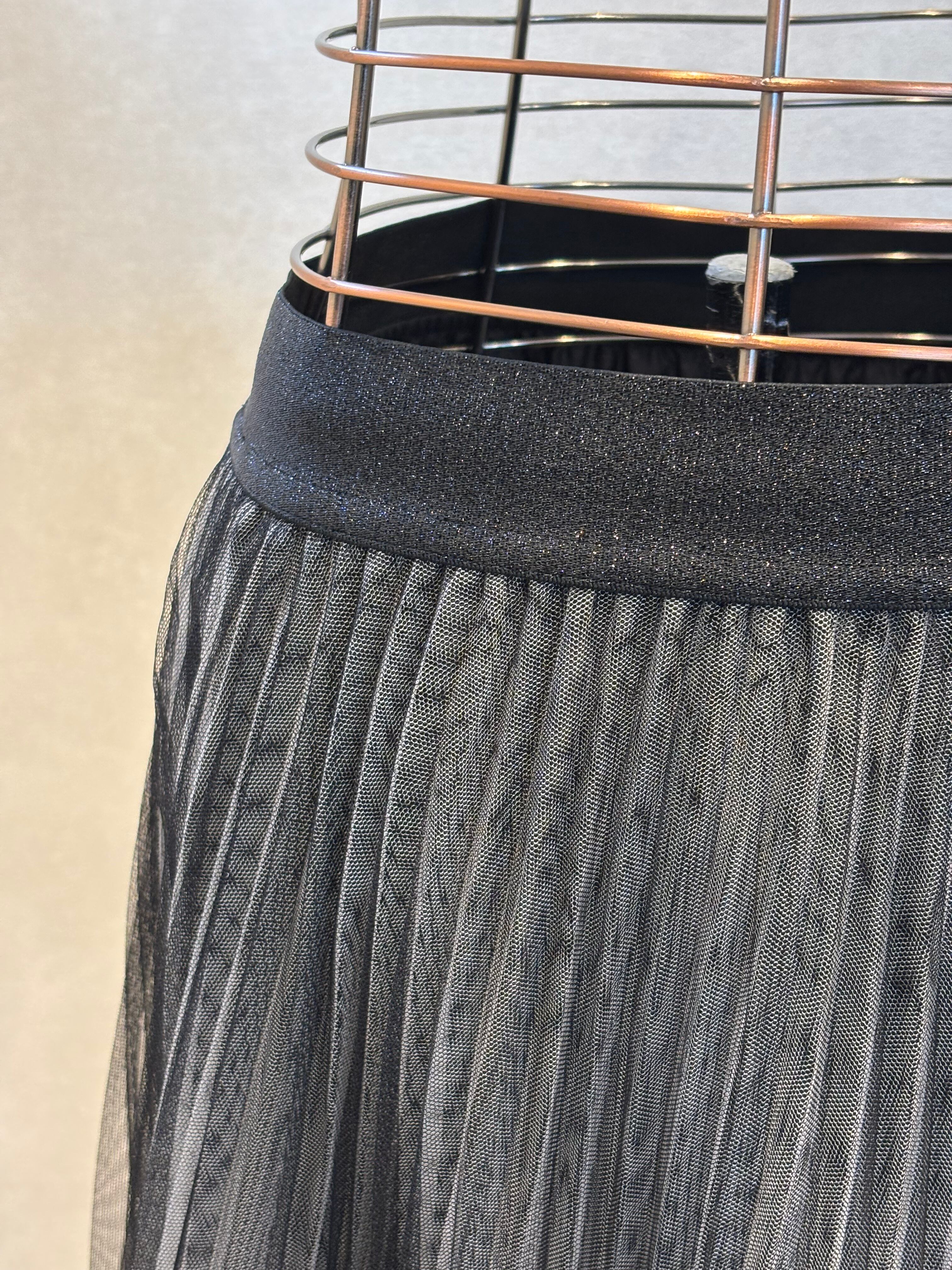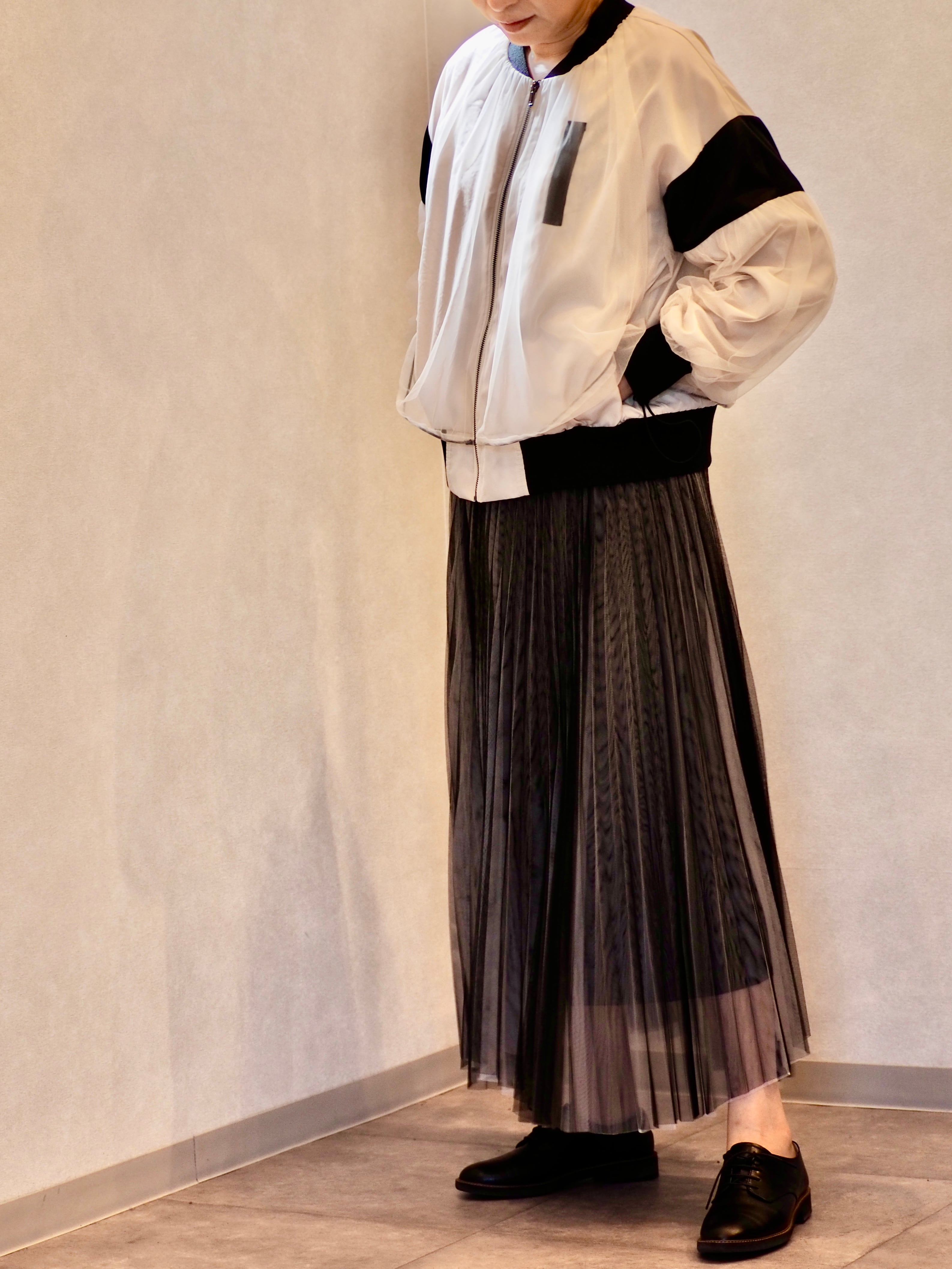 アイボリー、ブラックの順番でチュールスカートをプラス
