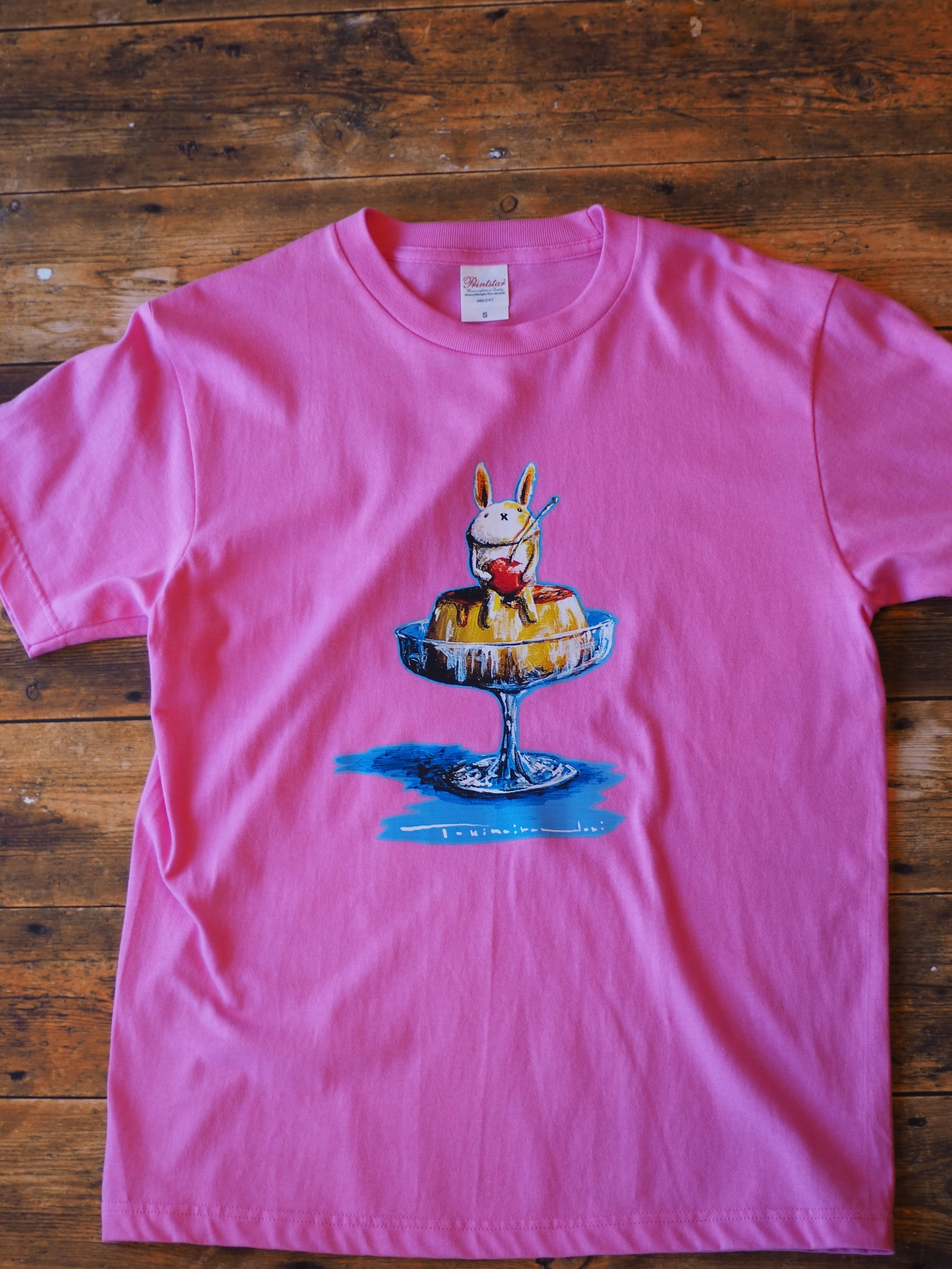 トキノイロドリさんの作品を色鮮やかなピンクボディのTシャツにプリント