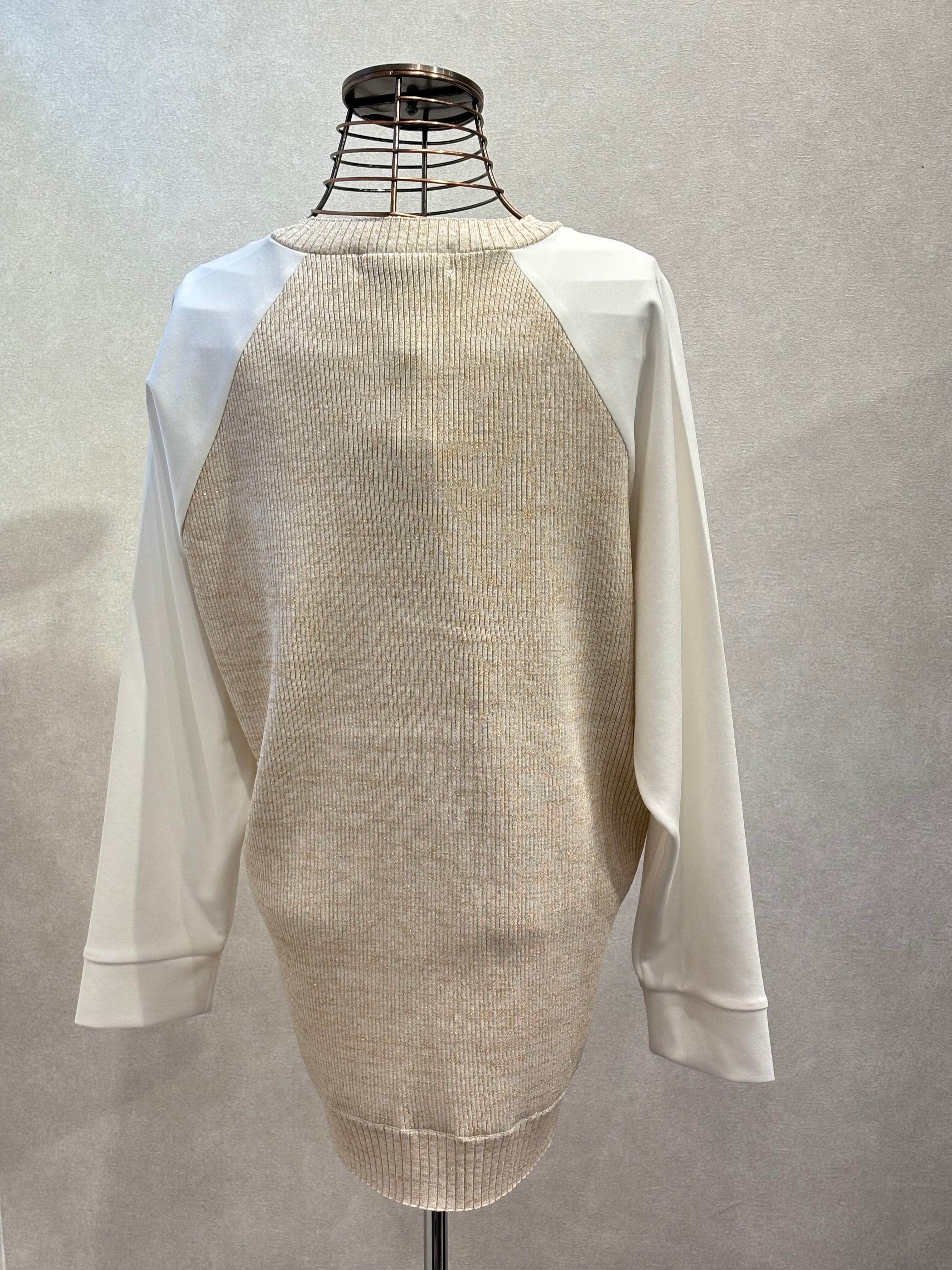 前は薄いダンボール生地、後ろはラメ入りのサマーセーターで上品見えのカットソーが登場