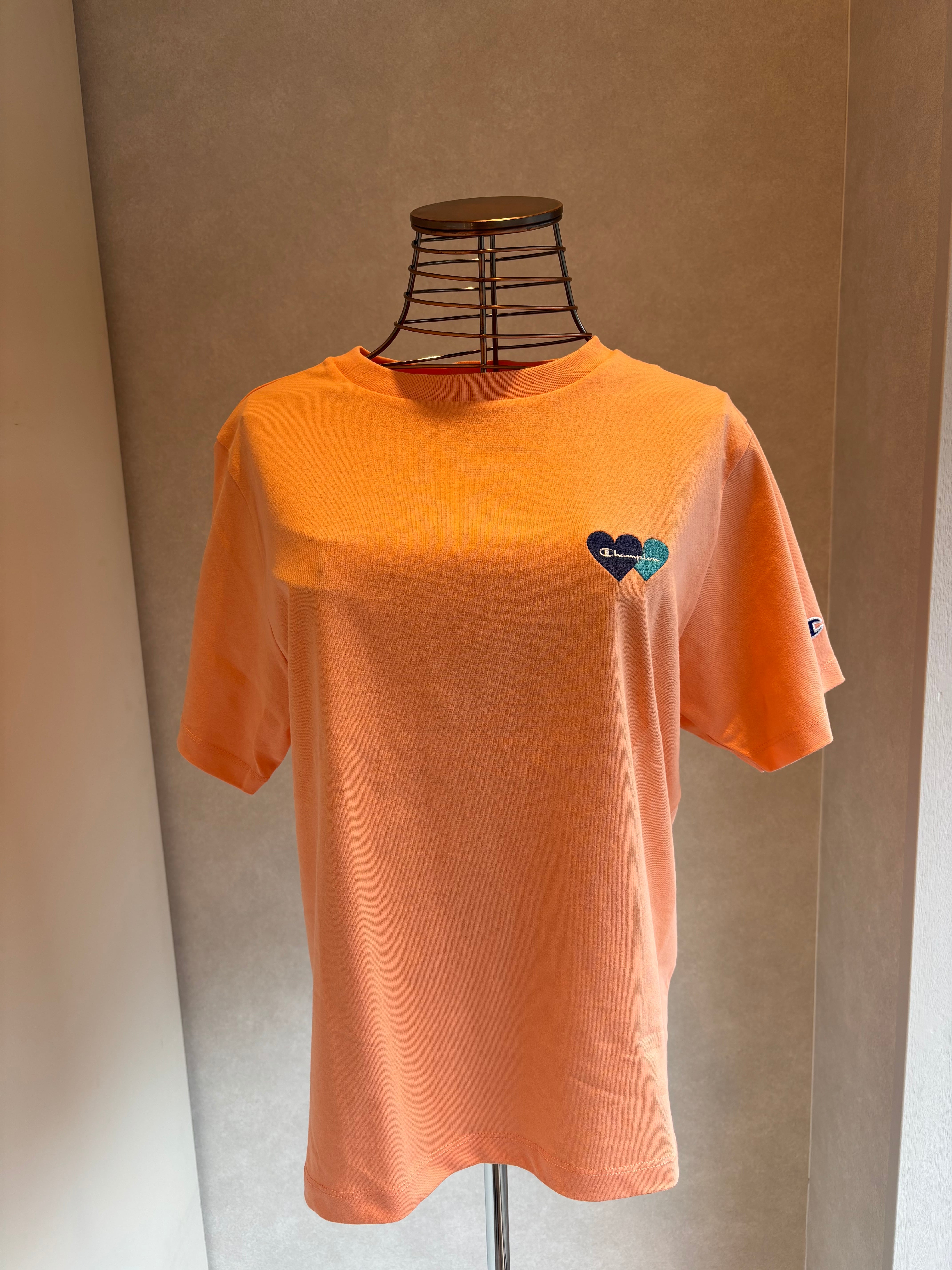左胸にボディカラーと異なる色で入れた、ハートとChampion(チャンピオン)ロゴの刺繍が特徴的です