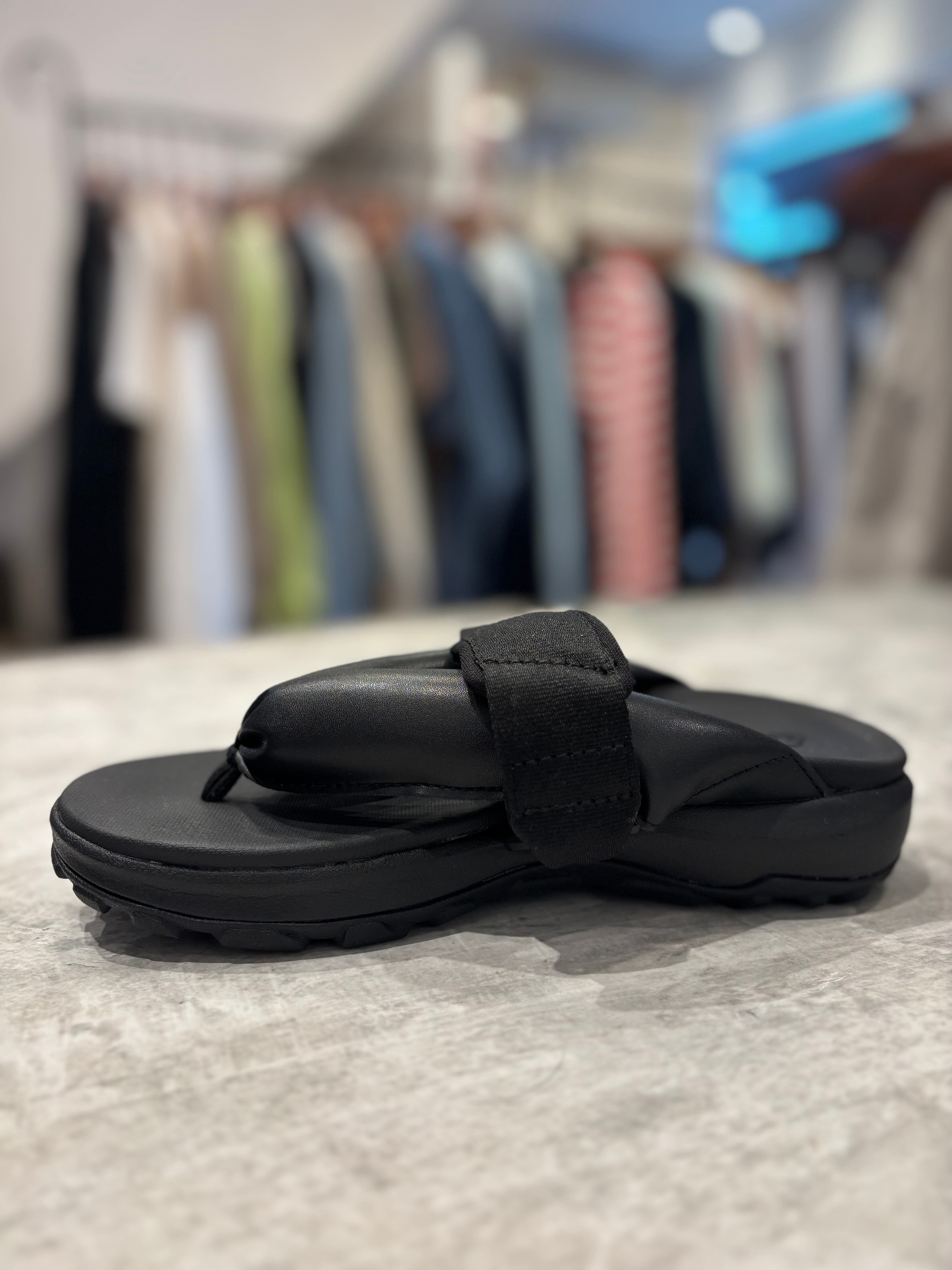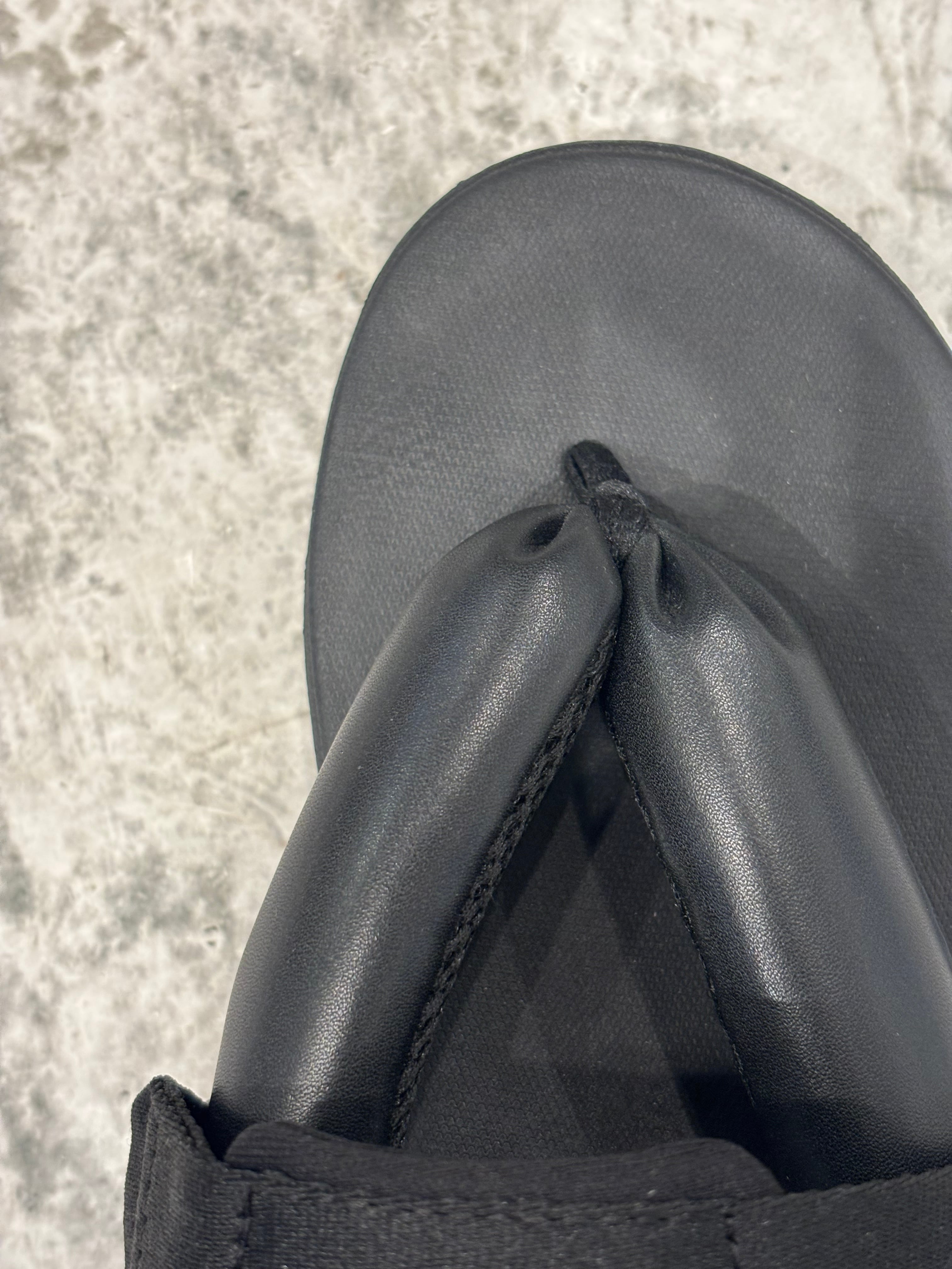 オリエンタルな雪駄のデザインをベースに、ボリュームのある鼻緒とシルエットでシンプルながら存在感のある一足に仕上げました。